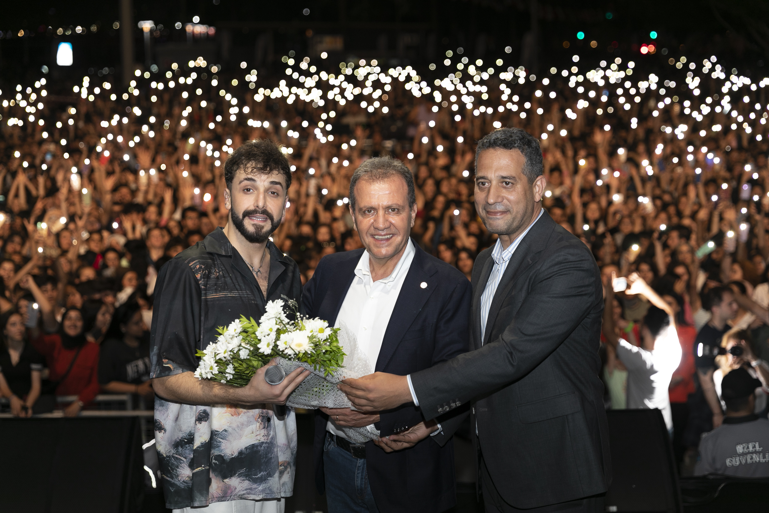 CHP Parti Meclisi Üyesi ve Mersin Milletvekili Ali Mahir Başarır da Başkan Seçer’e teşekkür ederek, “‘Türkiye’de iktidara geldiğimizde ne yapacaksınız?’ diye bana soruyorlar. Diyorum ki ‘Türkiye’yi Mersin gibi yapacağız.’ Çok şanslıyız; böyle bir belediye başkanımız var” diye konuştu. Sanatçıya çiçeğini takdim eden Başkan Seçer, Sefo ve Ali Mahir Başarır ile çektirdiği anı fotoğrafıyla günü ölümsüzleştirdi. (Haber Merkezi)