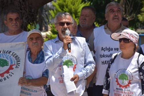 Emeklilerin açlık sınırı altındaki maaşların altında ezildiğini vurgulayan Kurt, “Seçimden hemen sonra başlayan zam furyası ve yabancı paralar karşısında eriyen TL, bizleri her geçen gün açlığa mahkum ediyor, bize kemerinizi sıkın diyenleri uyarıyoruz. Sıkılacak kemerimiz kalmadı. Verdiğiniz maaş ev kirasına yetmez hale geldi. Zamları derhal durdurun, neoliberal politikalardan vaz geçin, ülkemizde üreten kamucu ekonomik modele geçin. Gençlerimiz, çocuklarımız, torunlarımız tam istihdama kavuşsunlar, kendi vatanlarında üretsinler, onurlu bir yaşam sürsünler. Emekliler huzur içinde yaşasınlar” diye konuştu.